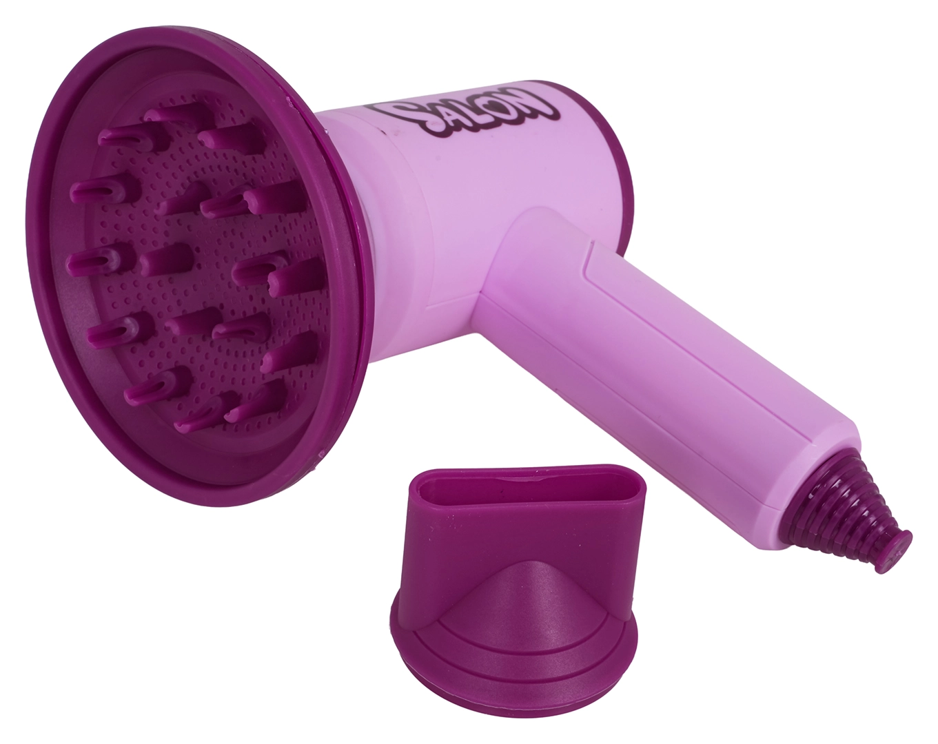 Der Kinderföhn bietet Föhn-Geräusch und einen sanften Luftstrom für realistisches Spiel. Im Set sind Diffusor und Konzentrator für verschiedene „Styling“-Effekte enthalten.
