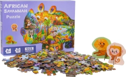 Dieses kreative Puzzleset mit Safaritieren bietet Kindern ab 6 Jahren stundenlangen Spaß und Lernen. Nach dem Zusammensetzen entsteht ein großes Bild in Form eines Nashorns mit Illustrationen von Safaritieren. Zwei spezielle Teile mit Standfüßen (Löwe und Äffchen) können beispielsweise auf ein Regal oder einen Tisch gestellt werden.