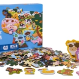 Entdecken Sie den Zauber des Bauernhofs beim Zusammensetzen des 200-teiligen Puzzles, das nach der Fertigstellung ein originelles, kuhförmiges Bild mit fröhlichen Tieren zeigt. Zwei spezielle Teile mit Standfüßen (Schäfchen und Kuh) lassen sich separat, zum Beispiel im Regal oder auf dem Tisch, ausstellen. Die hochwertige, farbenfrohe Ausführung erfreut Kinder und Eltern gleichermaßen.