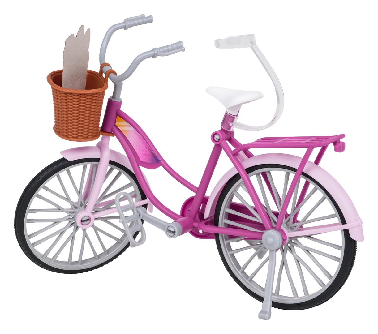 • Realistische Ausführung: rosa Rahmen, weißer Sattel, graue Details, hinterer Gepäckträger.