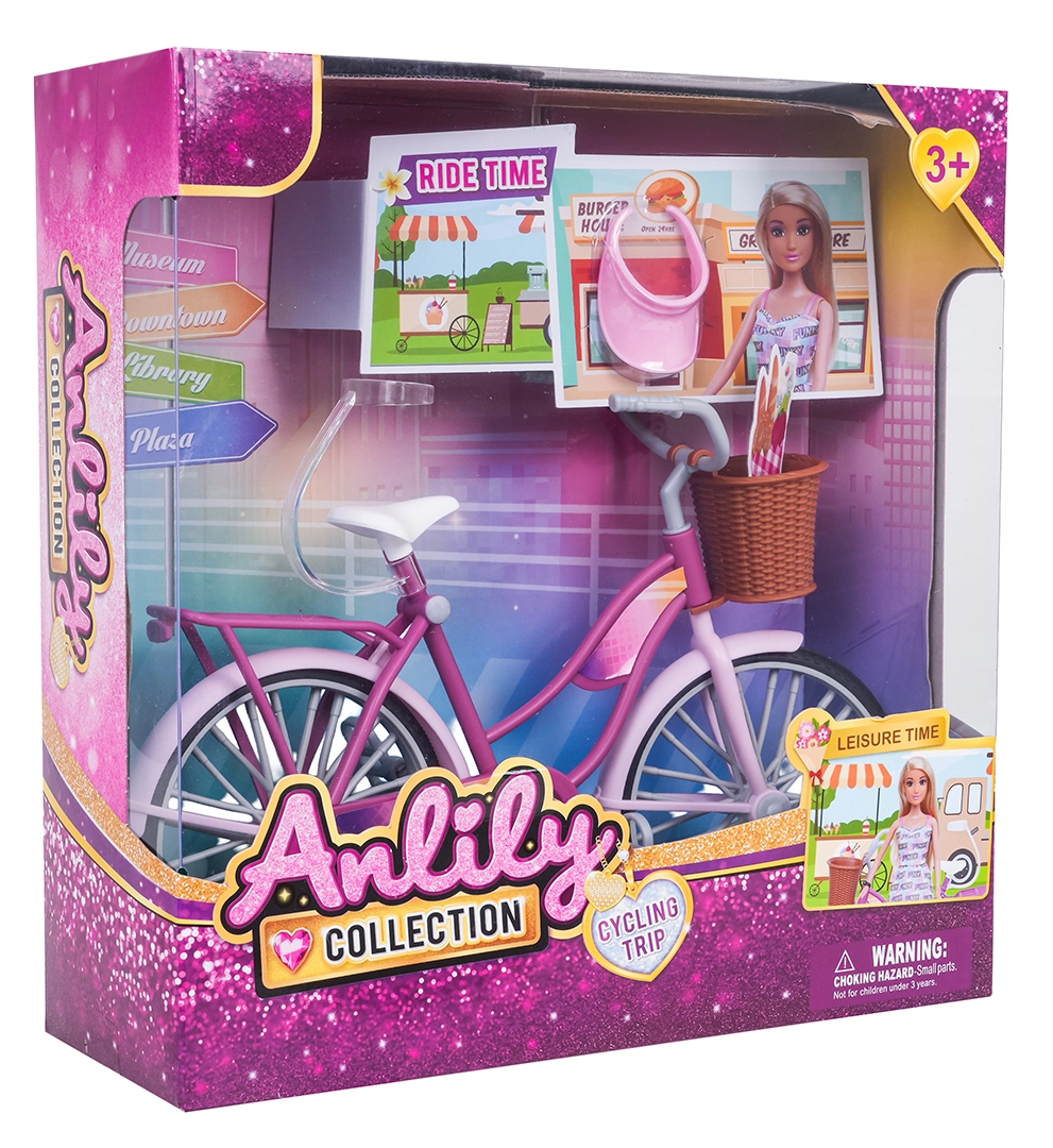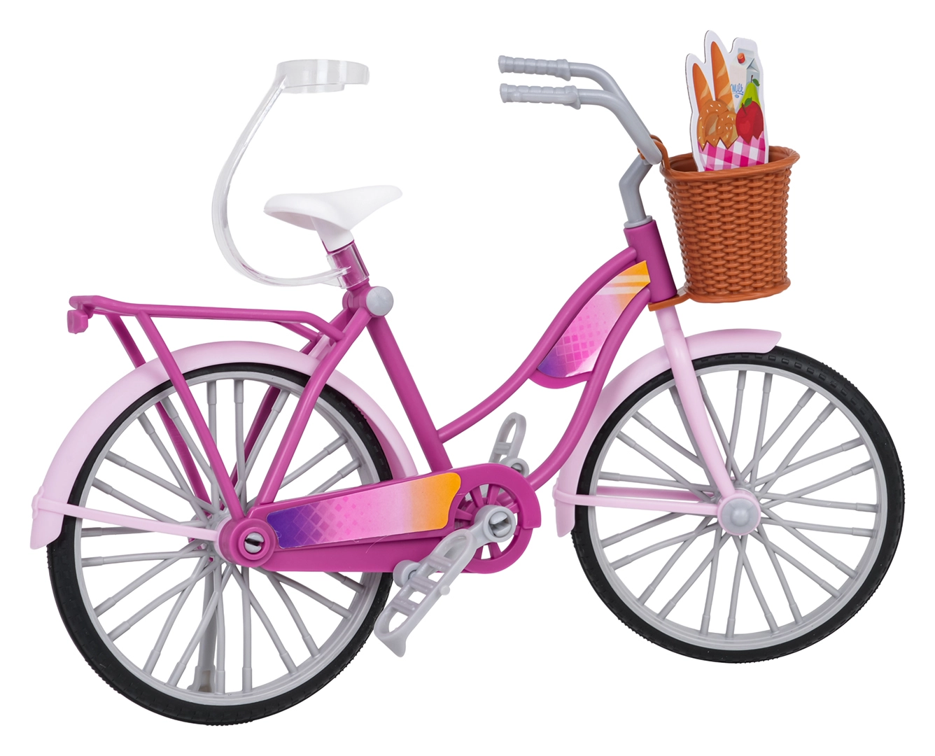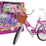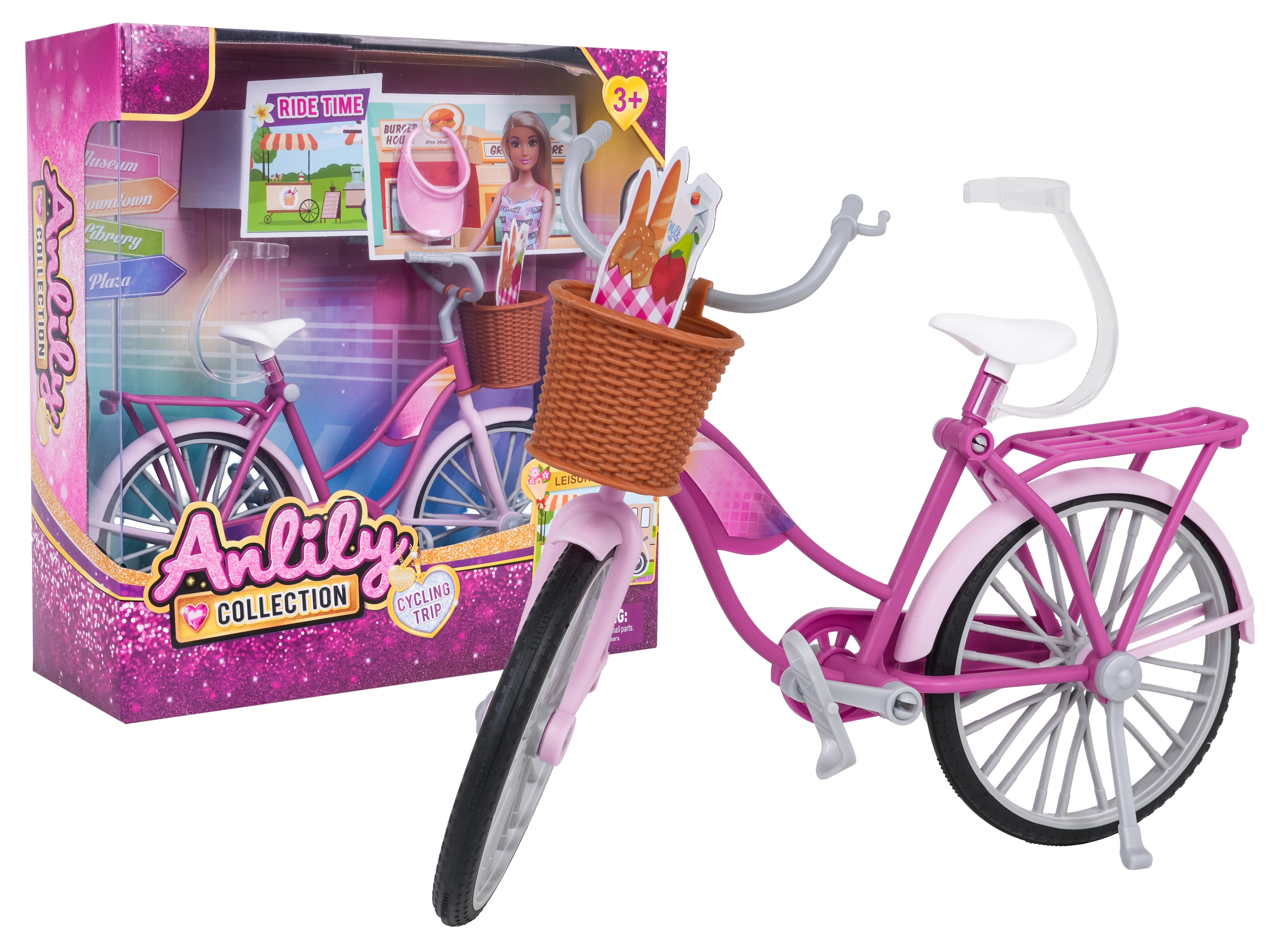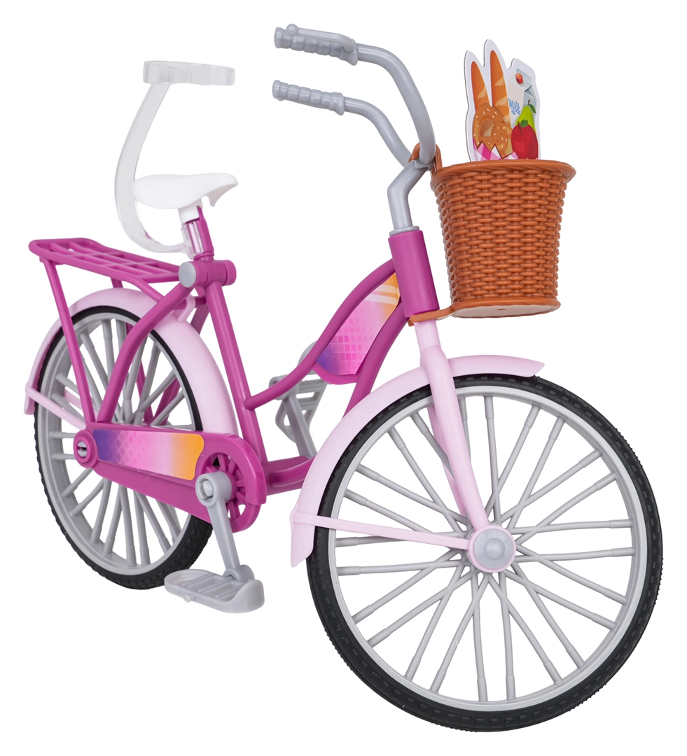 Das niedliche rosa Fahrrad für Puppen begeistert Kinder ab 3 Jahren. Es hat einen detailreich gestalteten Rahmen, bewegliche Räder, Pedale und Lenker, einen vorderen Korb für Kleinigkeiten sowie einen hinteren Gepäckträger. Außerdem enthalten sind ein Ständer für sicheres Abstellen und eine Schirmmütze für die Puppe. Hergestellt aus hochwertigen Materialien in lebendigen Farben – ideal als kreatives Geschenk für kleine Rollenspiel-Fans.