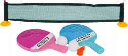 Ein unterhaltsames und leicht aufzubauendes Tischtennis-Set für Kinder ab 3 Jahren und älter. Dank der Saugnäpfe lässt es sich schnell auf einem glatten Tisch befestigen und es kann sofort losgespielt werden. Enthalten sind zwei Schläger, zwei Bälle, ein Netz mit Kunststoffpfosten, Saugnäpfe sowie eine Pfeife. Ideal für den Spielspaß zu Hause und als Geschenk. Einfache Montage, aktive Freizeitbeschäftigung, geeignet für kleine und größere Kinder.