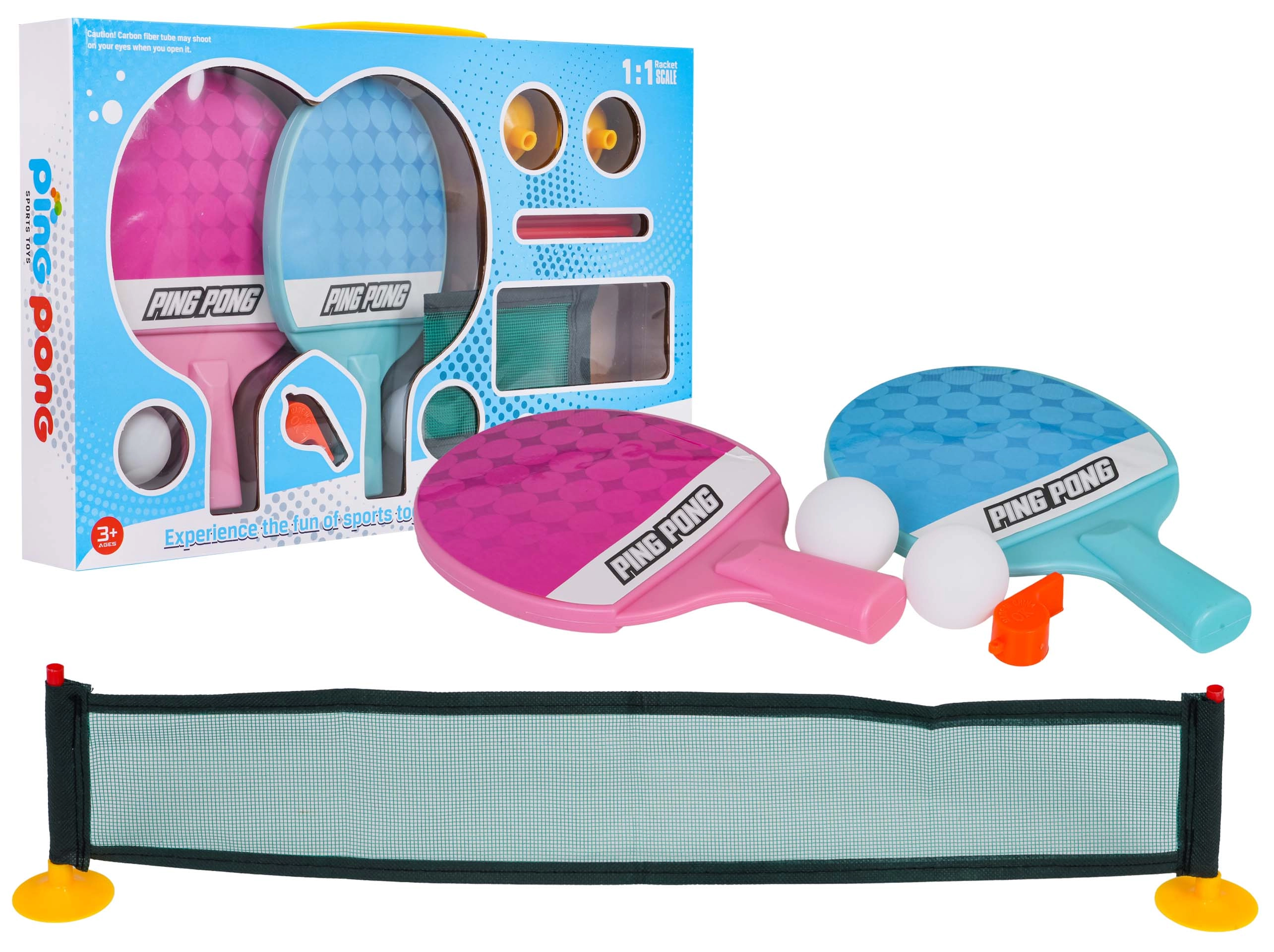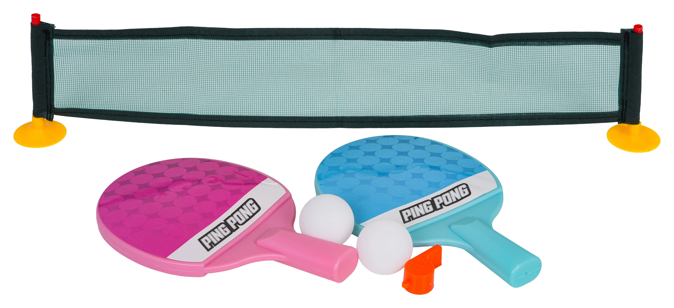 Dieses Kindertischtennis-Set verwandelt jeden glatten Tisch im Handumdrehen in eine Spielfläche. Das Netz wird einfach ausgeklappt, an die Kunststoffpfosten mit Saugnäpfen befestigt und diese auf die ebene Oberfläche gedrückt. Dann nur noch den Ball flott über das Netz spielen und gemeinsam mit den Kindern Bewegung und Spaß genießen.