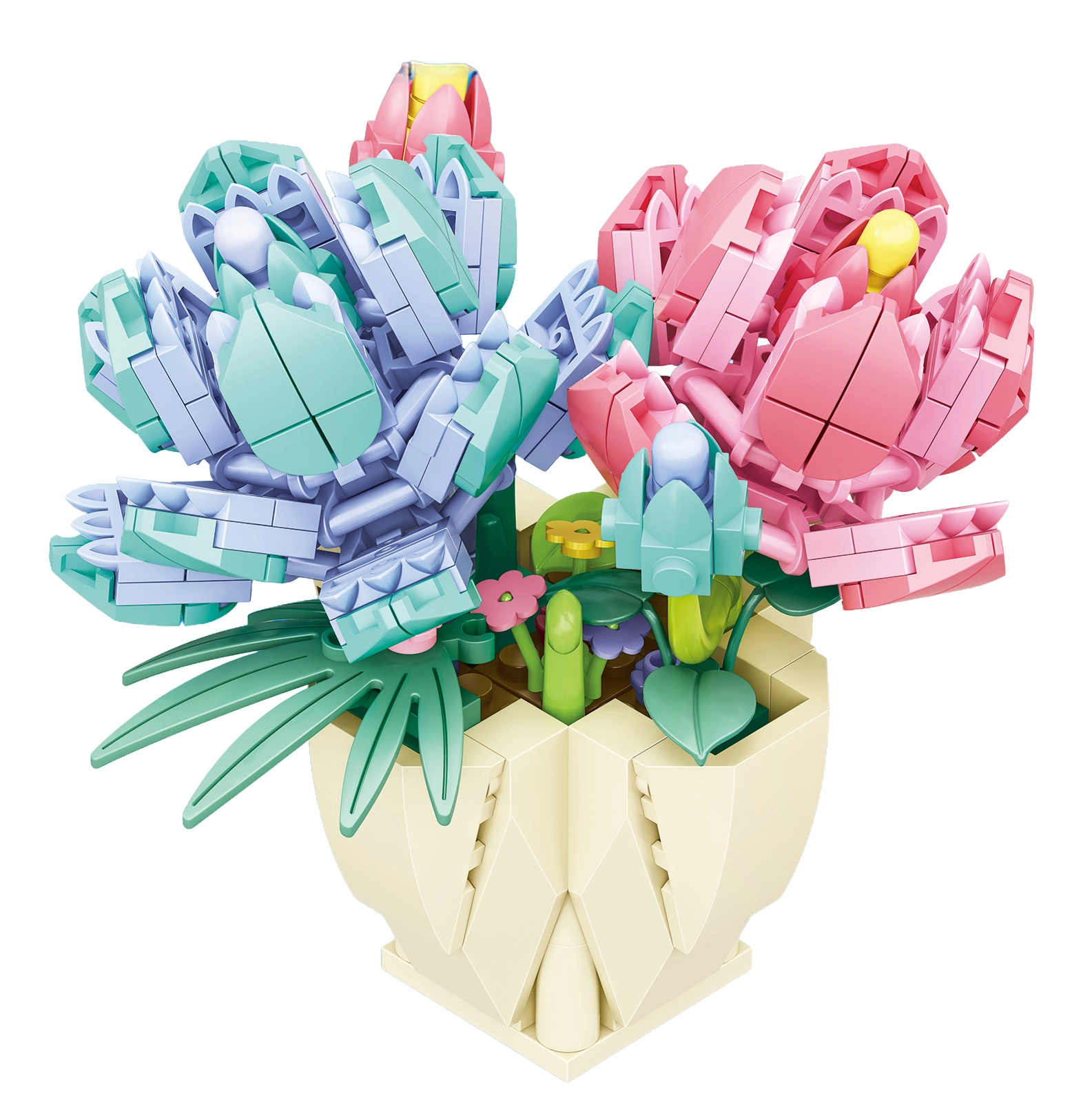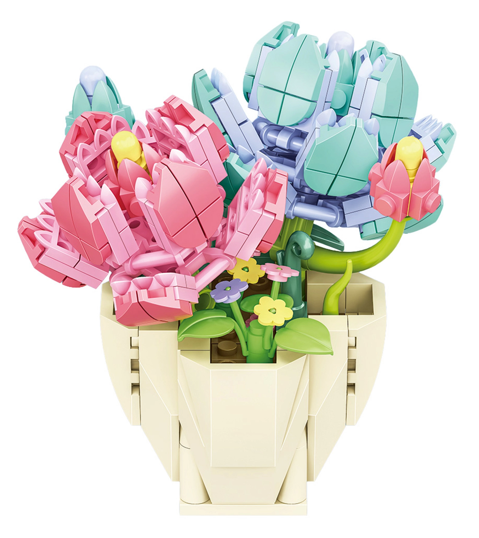 Dieses kreative Bauset ermöglicht Kindern, eine beeindruckende Blumenkomposition im Blumentopf zu gestalten, die jedes Kinderzimmer schmückt oder als originelles Geschenk für Nahestehende erfreut. Die Teile aus robustem Kunststoff greifen gut ineinander, und das fertige Modell überzeugt mit präzisen Details.