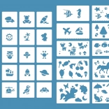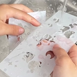 Abwaschbare Kunststoffschablonen lassen sich leicht mit Wasser reinigen und immer wieder verwenden – von Tieren über Sterne bis hin zu weiteren Mustern.