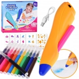 Im Lieferumfang enthalten sind Schablonen mit vielfältigen Motiven, 12 Farbstifte sowie ein USB-Kabel für komfortables Aufladen. Kinder trainieren Fantasie, Farbgefühl und Geduld – ganz ohne Spraydosenchaos und ohne Geruch.