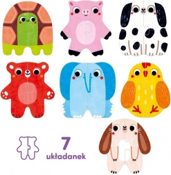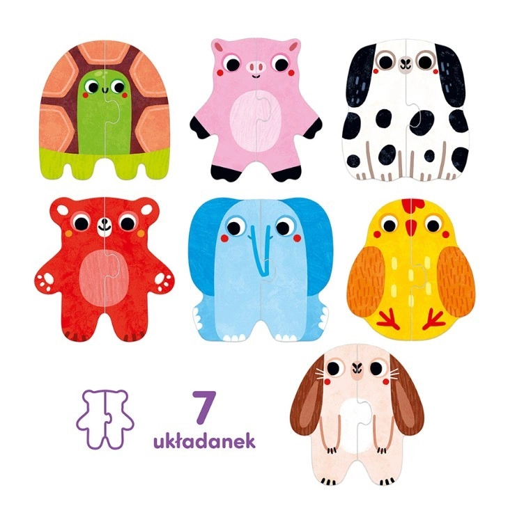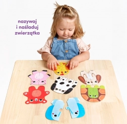 Niedliche Tierpuzzles für die Kleinsten helfen Kindern, erste zweiteilige Bilder zusammenzusetzen und dabei Feinmotorik, Wahrnehmung und Wortschatz zu entwickeln. Das einfache Zuordnen symmetrischer Hälften bringt Freude bei jeder richtigen Verbindung und fördert Kreativität sowie spielerisches Lernen.