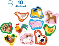 Fröhliche Hoftiere laden Kinder zu stundenlangem kreativem Spiel ein. Das Zuordnen von Pärchen ist ideal als erster Schritt in die Welt der Puzzles und hilft, Geduld und Konzentration zu trainieren. Das Spiel fördert ganz natürlich die Sprache – Kinder benennen Tiere, Farben und Details auf den Bildern und lernen, sie zu unterscheiden.