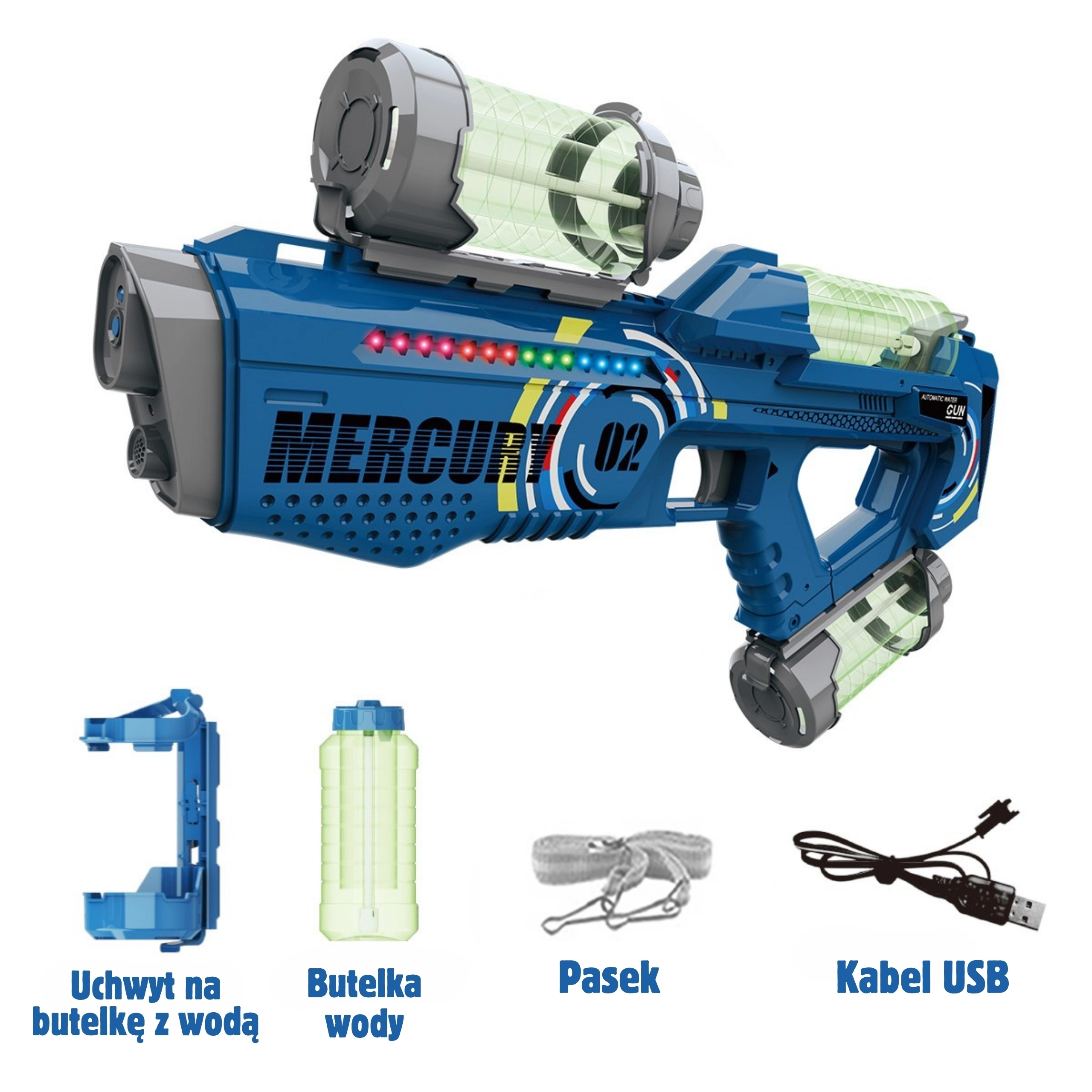Die elektrische Wasserpistole WOOPIE MERCURY 02 ist für maximalen Komfort und Spaß konzipiert. Dank des automatischen Betriebs musst du nicht pumpen – einfach den Abzug drücken und einen kontinuierlichen Wasserstrahl genießen. Der 2200-mAh-Akku sorgt für lange Laufzeit pro Ladung und eine LED-Anzeige informiert dich über den Ladestatus.