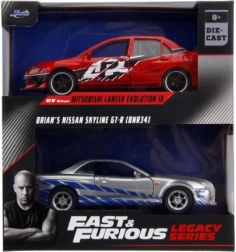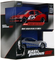 Erhalte gleichzeitig den Mitsubishi Lancer Evo IX 2006 und Brians Nissan Skyline GT‑R R34 – das ikonische Duo aus Fast & Furious im Maßstab 1:32.
