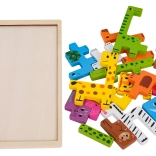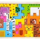 Das Spielzeug unterstützt die Entwicklung des logischen Denkens, die Hand-Auge-Koordination und das Lernen von Formen und Farben. Mit 18 bunt gestalteten Tierteilen (zum Beispiel Giraffe, Krokodil, Tiger, Löwe, Elefant, Zebra, Affe, Kamel oder Schlange) entdecken Kinder spielerisch die Welt der Tiere.