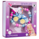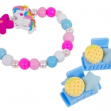 Entdecken Sie ein verspieltes Schmuck-Set mit Einhorn, das bunte Perlen, Perlkügelchen und harmonisch abgestimmte Haar-Accessoires kombiniert. Das elastische Armband lässt sich leicht anziehen, die Spangen halten feine Strähnen zuverlässig, und das gesamte Set ist perfekt für den Alltag wie für festliche Momente.