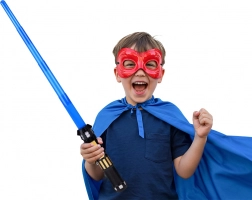 Dieses Lichtschwert ist perfekt für alle kleinen Fans von Weltraumabenteuern. Dank der teleskopischen Konstruktion lässt sich das Schwert mit einer energischen Vorwärtsbewegung leicht ausfahren, während die Taste am Griff die leuchtend blaue Klinge und realistische Sounds aktiviert. Ideal für Rollenspiele, Kostüme und fantasievolle Duelle zu Hause.