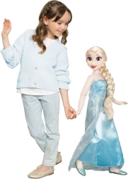 Entdecken Sie die Magie des Eiskönigreichs mit der übergroßen Elsa-Puppe mit 86 cm Höhe, die mit einem detailreichen Kleid mit Flocken, einem langen blonden Zopf und feinen Gesichtszügen verzaubert. Dank der voll beweglichen Konstruktion lässt sie sich hervorragend bewegen, sitzt leicht, posiert und begleitet Kinder bei jedem Abenteuer.