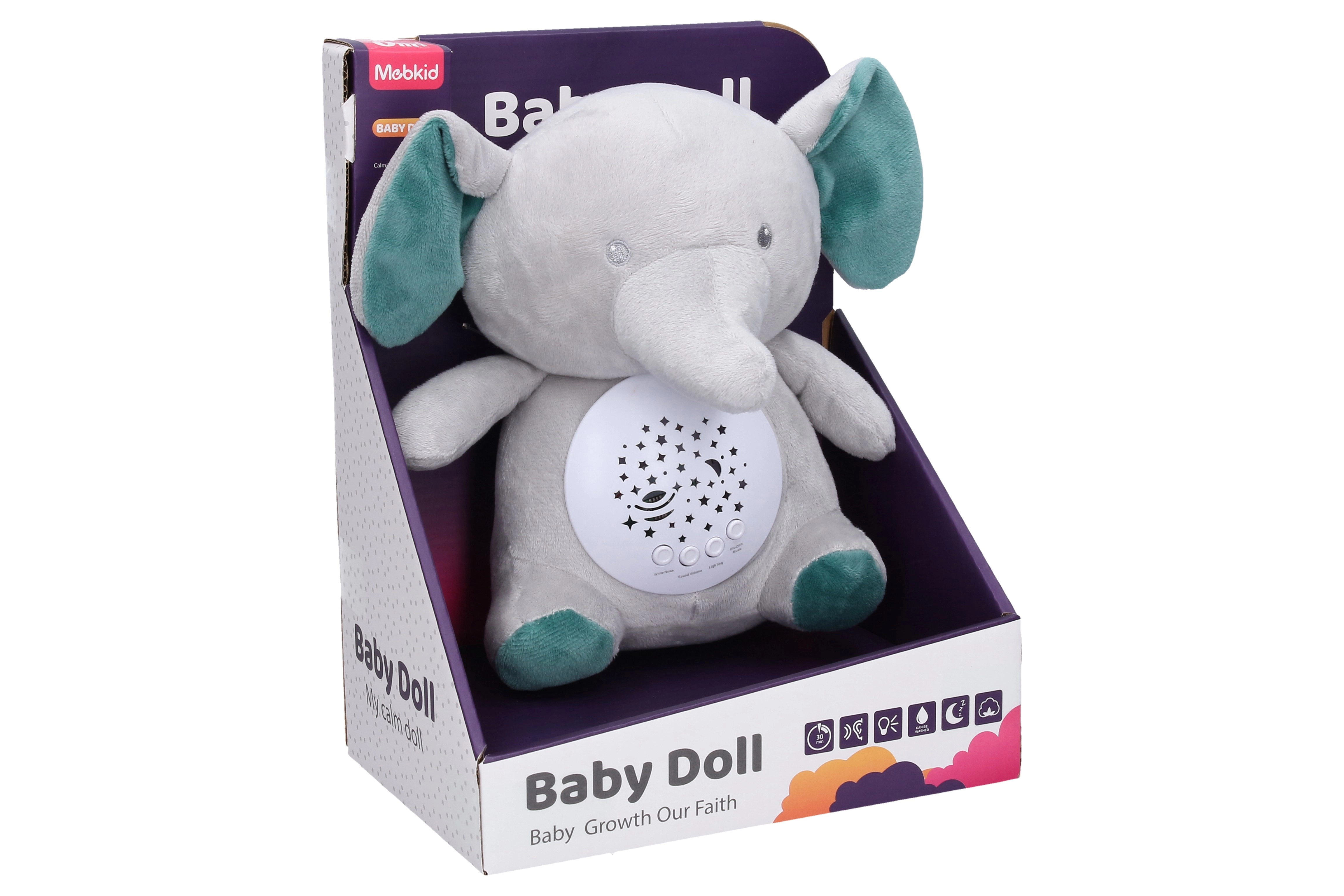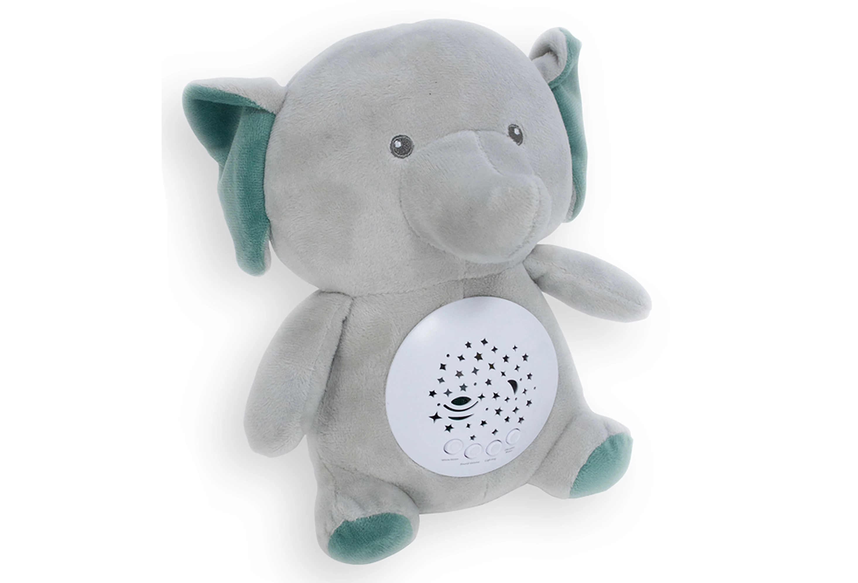 Dieser weiche Einschlafbegleiter in Elefantenform ist der ideale Partner für Abendrituale. Das integrierte Licht mit 7 Farben kann sanft automatisch wechseln, während die Auswahl aus 10 Melodien und 4 Varianten von Weißrauschen eine angenehme Atmosphäre für ruhigen Schlaf schafft.