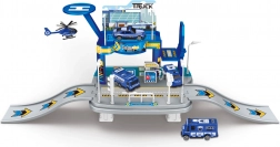 Diese Garage im Design einer Polizeistation mit integrierter Tankstelle ist ideal für kleine Fahrer und Polizisten. Die größere Länge von rund 65 cm sorgt für reichlich Platz für mehrere Spielautos und Szenarien – von Streifenfahrten über schnelle Einsätze bis zum Auftanken. Die stabile Ausführung und übersichtliche Spielzonen fördern kreatives Spielen.