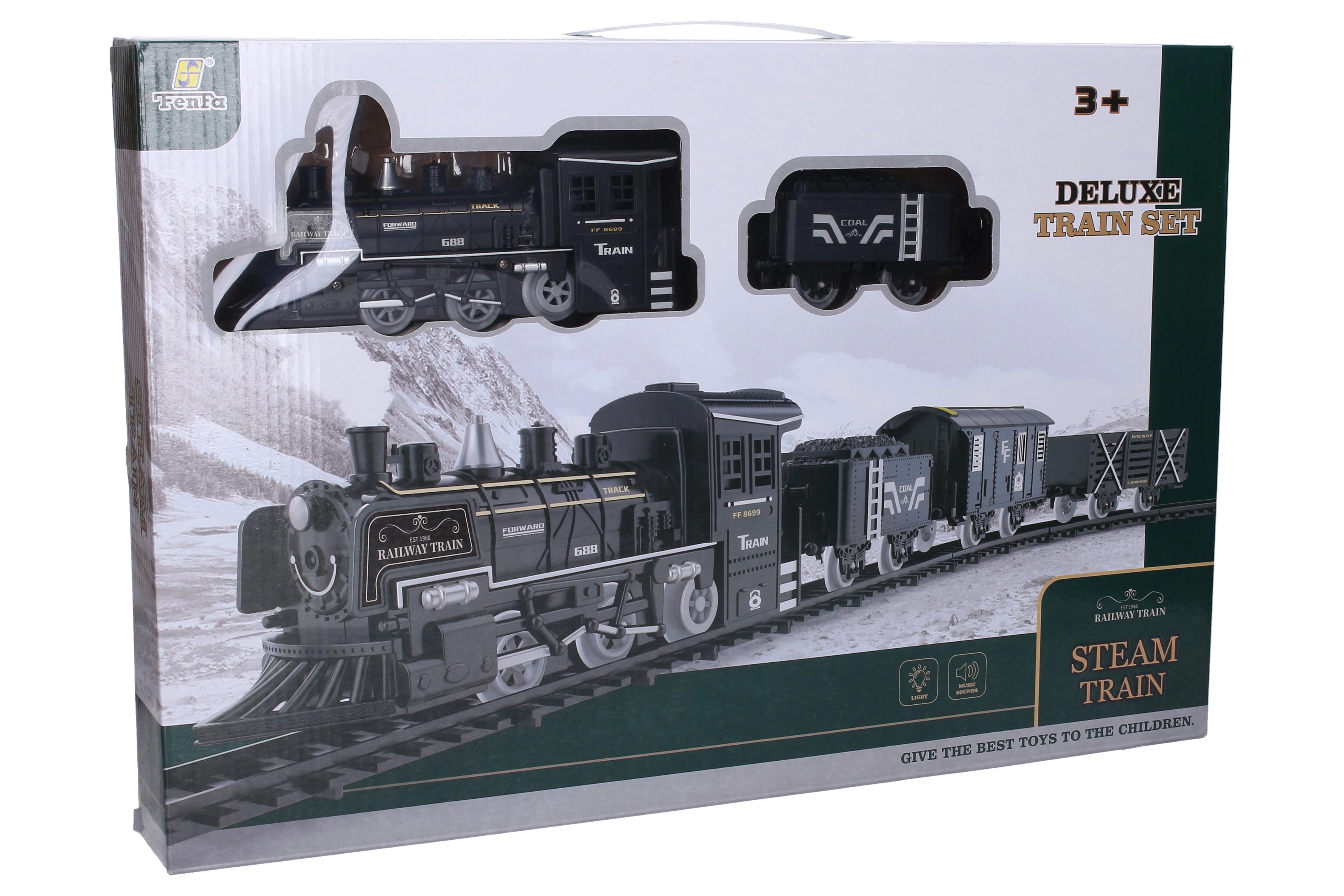 Dieser detailreich gestaltete Zug begeistert kleine und große Eisenbahnfans. Dank der realistischen Raucheffekte und Lokomotivgeräusche wirkt die Fahrt authentisch und macht viel Spaß. Das Gleisset lässt sich leicht in drei Größen anpassen, sodass Sie die Strecke dem Platz im Kinderzimmer anpassen können.