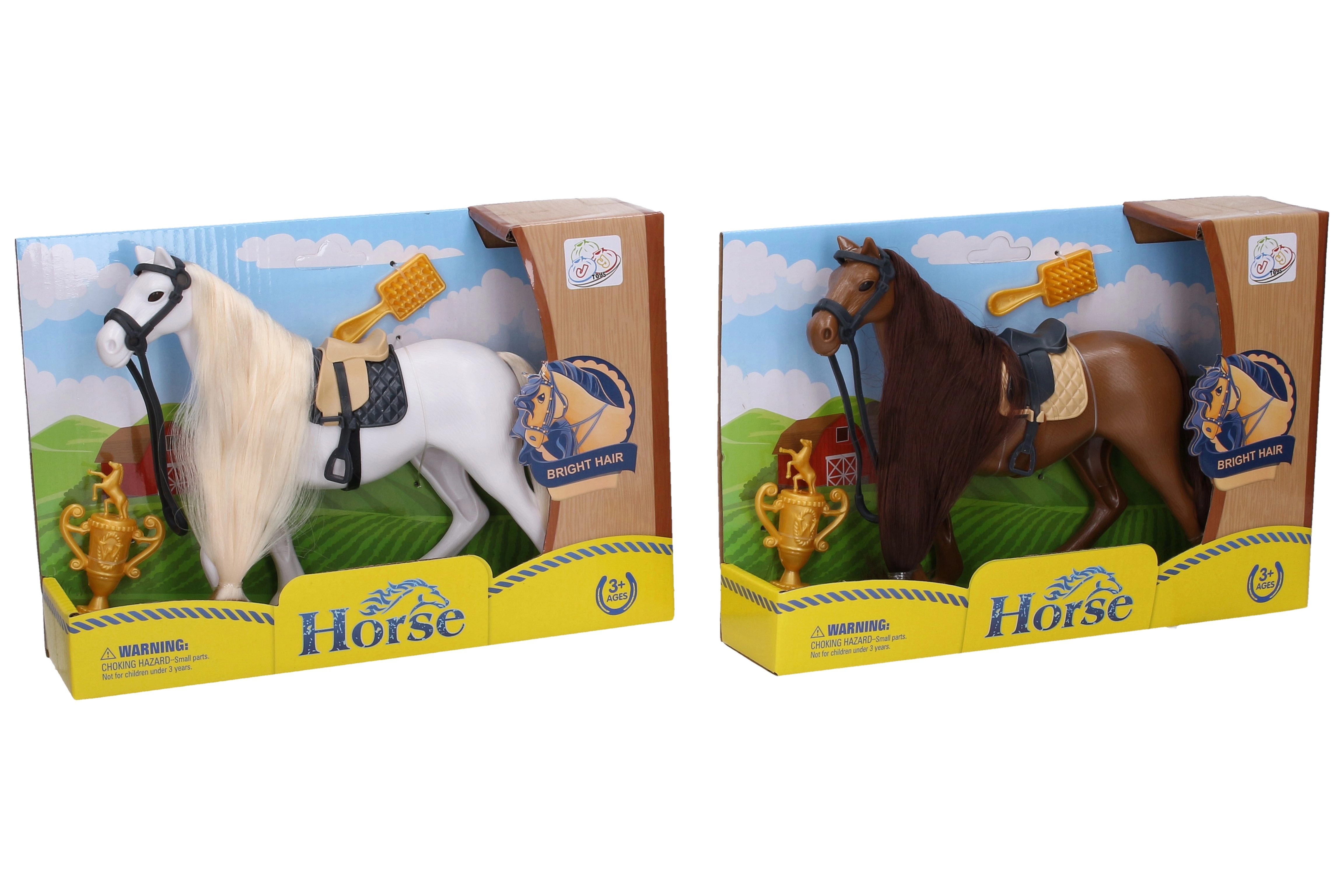 Das Spielzeug ist für kleine Kinderhände angenehm zu halten und bietet zwei Farbvarianten: braun und weiß. Perfekt für das freie Spiel oder als Ergänzung zu weiteren Reit-Sets.