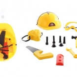 Dieses Kinder-Werkzeugset mit Helm bietet Kindern ein authentisches Erlebnis handwerklicher Tätigkeiten. Dank des leichten Helms, der Schutzbrille und der Maske können Kinder sicher spielen und die Welt der Erwachsenen nachahmen. Enthalten sind beliebte Werkzeuge wie Säge, Hammer, Schraubendreher und Schlüssel, ergänzt durch Schrauben und Holzimitate zum Üben des Schraubens.