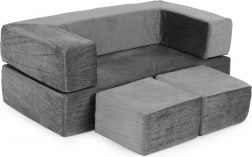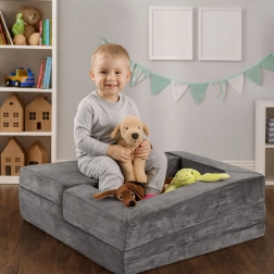 Der weiche, elastische Kern passt sich dem Körper an – beim Sitzen wie beim Liegen – und sorgt für Komfort beim Spielen, Lesen und Ausruhen. Abnehmbare Bezüge mit Reißverschluss erleichtern die Pflege und halten das Sofa langfristig frisch und hygienisch. Die zeitlose graue Farbe lässt sich leicht mit der übrigen Einrichtung kombinieren.