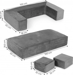 Das modulare Sofa von ECOTOYS ist eine hervorragende Lösung für Kinderzimmer und Spielräume. Vier Schaumteile mit angenehmem Stoffbezug lassen sich zu einer klassischen Couch, einer Chaiselongue oder einer geschlossenen Spielecke zusammenstellen. Die leichte Konstruktion fördert Selbstständigkeit und Kreativität – Kinder können die Möbel je nach Laune leicht umgestalten.