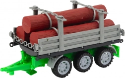Traktor, Anhänger und Stämme bilden ein komplettes Set. Einfaches Ankuppeln dank Zugöse und leichtlaufenden Rädern.