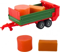 Grüner, zweiachsiger Anhänger mit offener Ladefläche – ideal zum Beladen und Transportieren von Heuballen in Bauernhof-Szenarien.