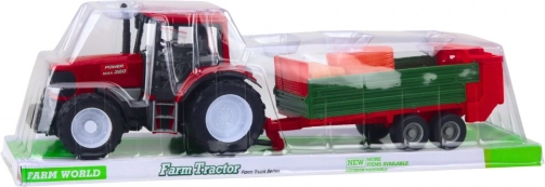 Entdecken Sie ein robustes Bauernhof-Set, das kleine Landliebhaber begeistern wird. Der detailreich gestaltete rote Traktor mit großen Rädern und abnehmbarem grünem Anhänger bildet echte landwirtschaftliche Maschinen täuschend echt nach. Mit dabei sind auch Heuballen, die sich beladen, transportieren und entladen lassen.