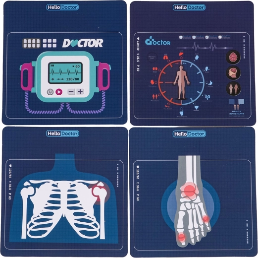 Herzschlag, Temperaturmessung, Tomografie-Geräusch und Alarm. Ein beleuchtetes Herzsymbol auf dem Display und austauschbare EKG-/Tomografie-Aufnahmen sorgen für noch realistischeres Spiel.