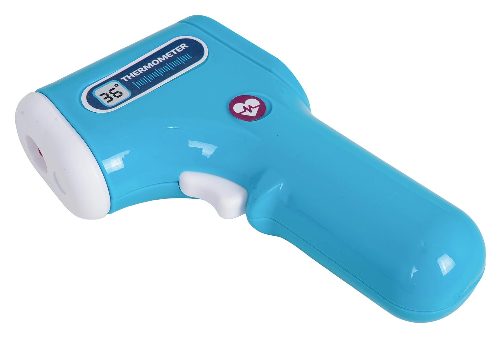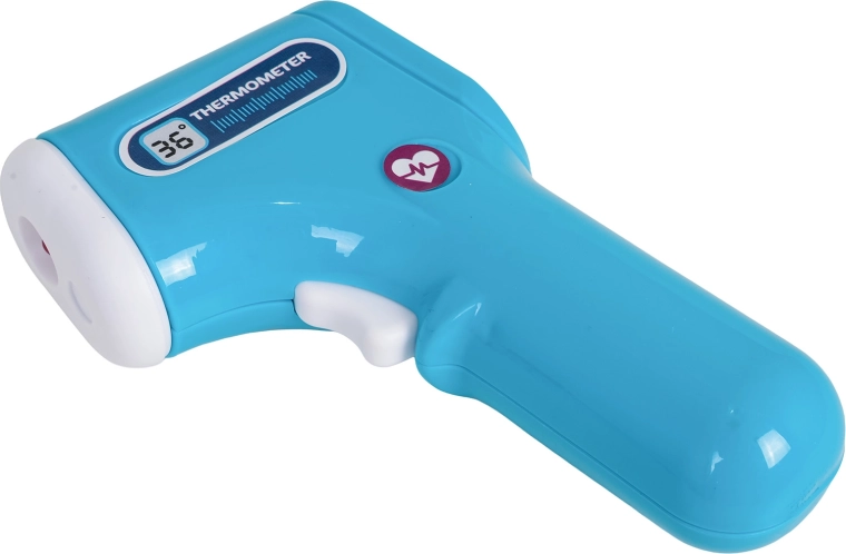 Das Monitor-Panel wird mit 2× AA 1,5 V betrieben (nicht enthalten). Das Thermometer wird mit 2× LR44 betrieben (enthalten). Hochwertige Kunststoffausführung in leuchtenden Farben und abgerundete Formen sind ideal für sicheres Kinderspiel.