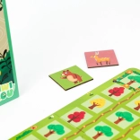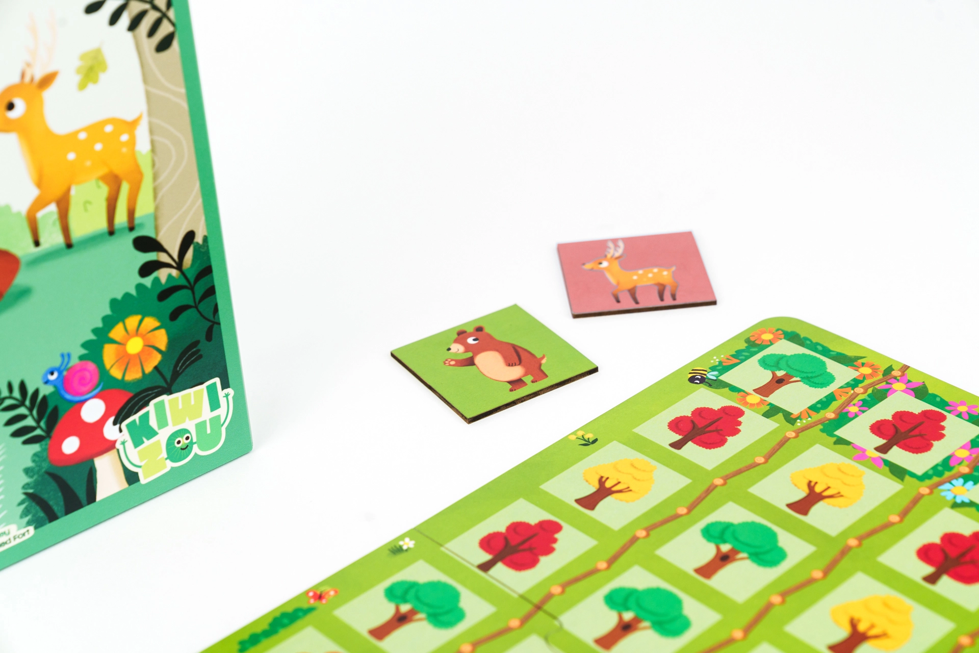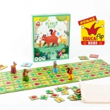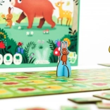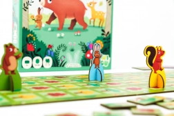 Waldrennen ist ein flottes Kinderspiel, in dem niedliche Tiere versuchen, als Erste durch den Wald bis ins Ziel zu laufen. Anstelle des klassischen Würfelns ziehen alle Spieler gleichzeitig Chips aus dem Beutel – dieser bestimmt, auf welches Feld sich alle bewegen. Manchmal erscheint jedoch ein Futterchip, und die Rennteilnehmer können dem Snack nicht widerstehen, was das Rennen angenehm verlangsamt und für einen Überraschungsmoment sorgt.