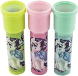 Das Kaleidoskop ist ein zeitloses Spielzeug, das beim Blick ins Licht mithilfe eines Systems aus Spiegeln und farbigen Teilchen einzigartige und sich ständig verändernde Muster erzeugt. Das Einhornmotiv erfreut alle kleinen Träumerinnen und Träumer sowie Liebhaber magischer Welten.