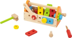 Dieser hochwertige Holz-Werkzeugkoffer der Marke VIGA aus der PolarB-Kollektion ist die ideale Wahl für kleine Tüftler. Kinder können schrauben, hämmern und verschiedene Konstruktionen zusammensetzen, lernen Werkzeuge kennen und entwickeln technisches Denken. Farbige Teile laden zum Spielen ein und fördern gleichzeitig Koordination und Geduld.