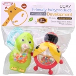 Dieses Duo aus Rasseln ist für die kleinsten Entdecker ab 3 Monaten konzipiert. Leichter Kunststoff und ergonomische Form ermöglichen ein einfaches Greifen, während der sanfte Klang das Gehör und die natürliche Neugier des Kindes anregt. Die kompakten Maße von 12 × 9 cm sind ideal für zu Hause und unterwegs.