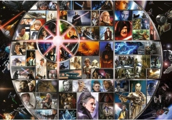 Entdecken Sie die bekanntesten Helden und Schurken aus dem STAR WARS Universum im riesigen TREFL UFT Puzzle-Set. Neun einzeln verpackte Bilder (jeweils 1.500 Teile) können Sie separat legen oder dank der UFT – Unlimited Fit Technology zu einer großen, eindrucksvollen Komposition ganz nach Ihrer Fantasie verbinden. Enthalten ist auch eine Papiervorlage für die einfache Anordnung der Motive.