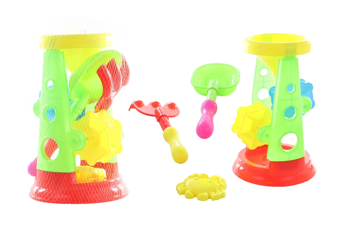 Dieses bunte Set mit Sandmühle bietet Kindern stundenlange kreative Unterhaltung. Die funktionsfähige Mühle lässt sich leicht mit Sand oder Wasser in Bewegung setzen und fördert Feinmotorik sowie Fantasie. Dank des leichten und robusten Kunststoffs ist es ideal für Spielplatz, Strand und Garten.