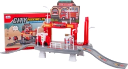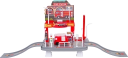 Diese detailreich gestaltete Feuerwache auf erhöhter Basis bietet Kindern stundenlanges fantasievolles Spiel. Zwei Ebenen mit Parkplätzen, Abfahrten und einem manuell bedienbaren Aufzug fördern die Motorik und regen Rollenspiele an. Die untere Ebene wird durch eine Tankstelle, Verkehrsschilder, Lampen und Ein-/Ausfahrt in Form von Rutschrampen ergänzt.