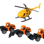 Im Set enthalten sind drei Metallmaschinen mit beweglichen Teilen und ein gelber Helikopter für Einsätze aus der Luft. Bereit für actionreiche Missionen auf der Baustelle.