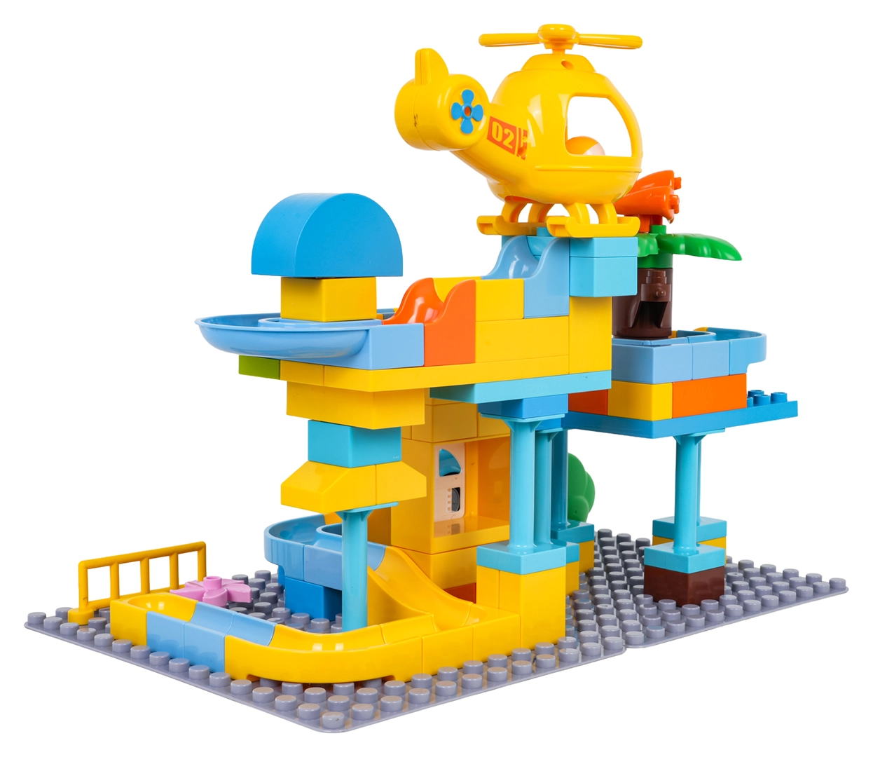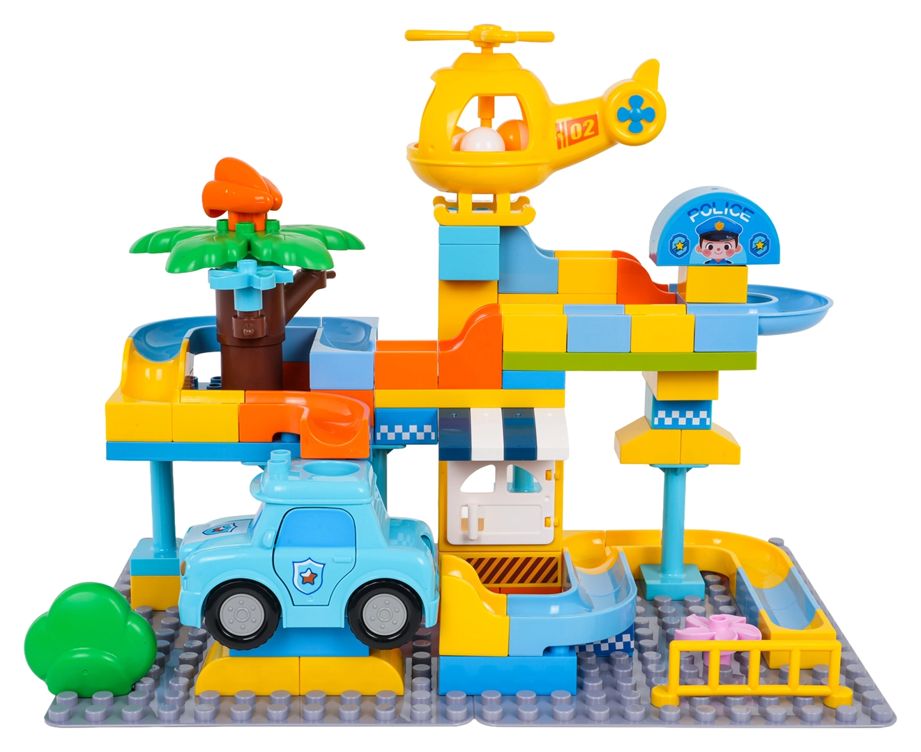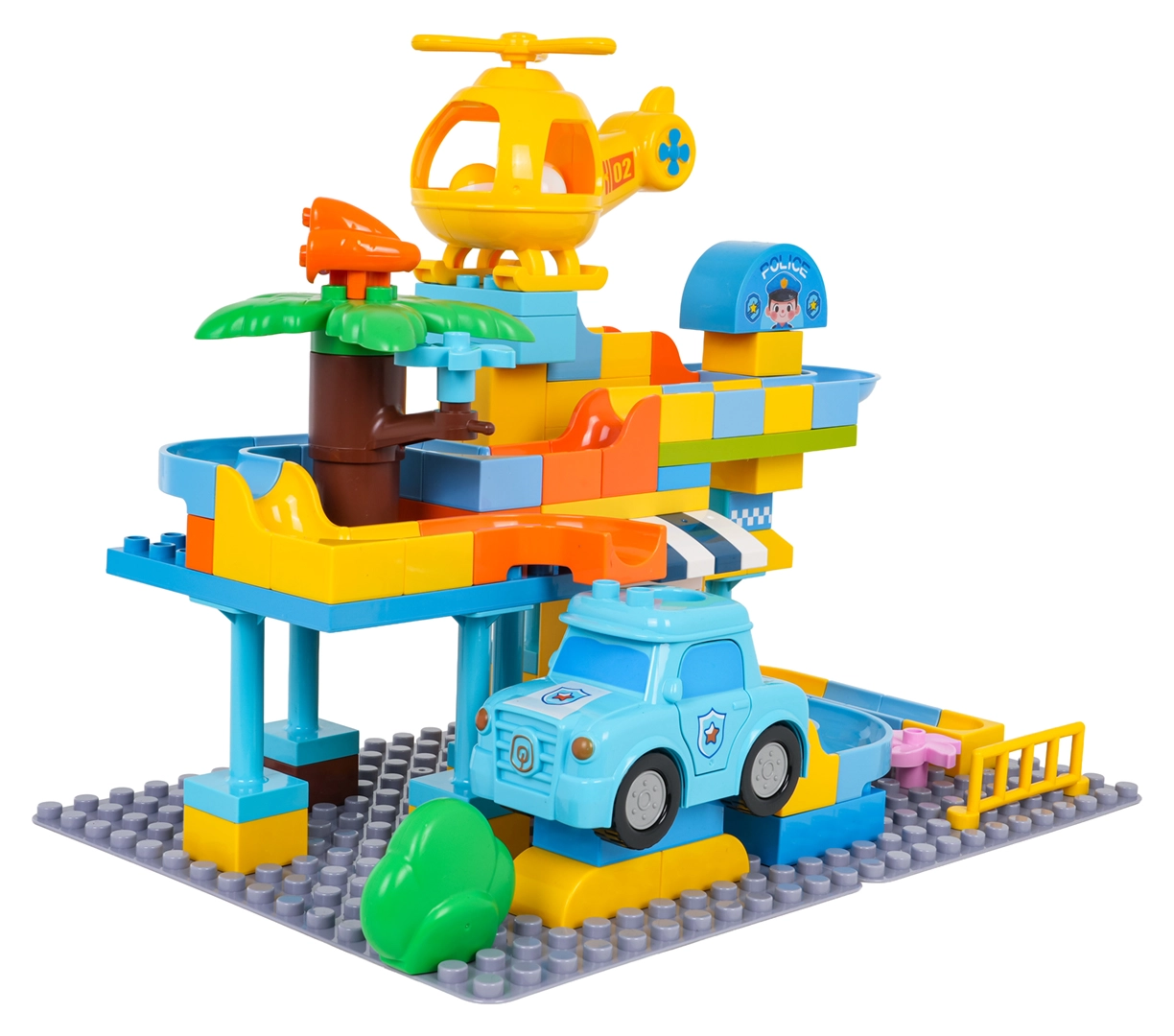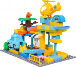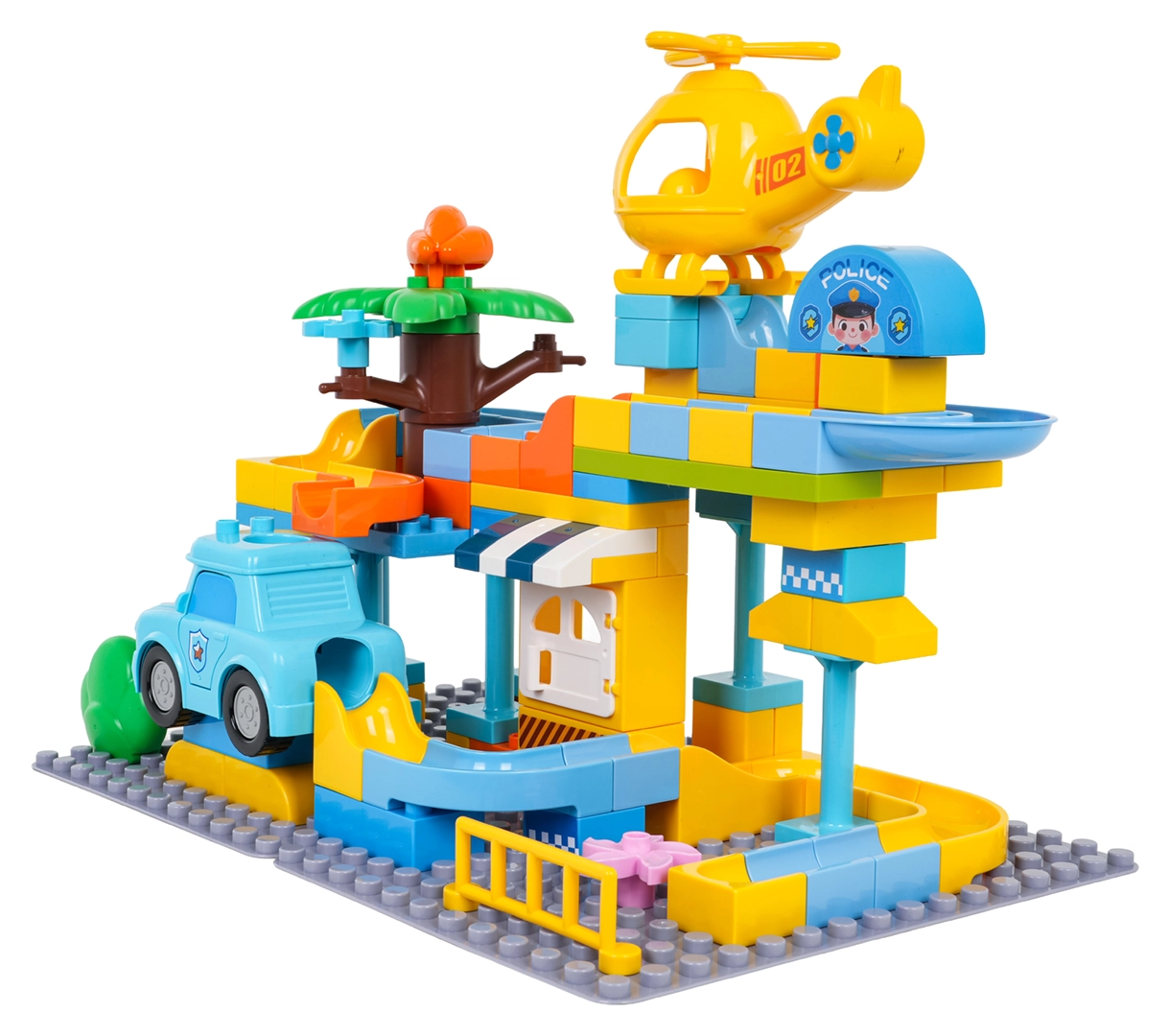 Mit diesem großen Bauset können Kinder ihre eigene Polizeistation mit Rutsche, Rampen und Landeplatz für den Hubschrauber bauen. Leicht steckbare Bausteine halten fest zusammen und die leuchtenden Farben regen auf natürliche Weise die kindliche Vorstellungskraft und Konzentration an.