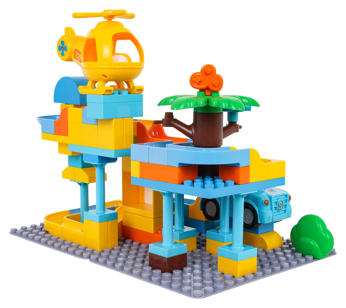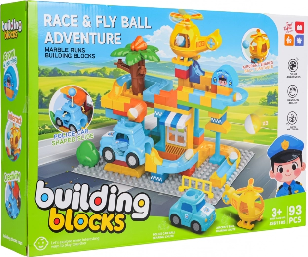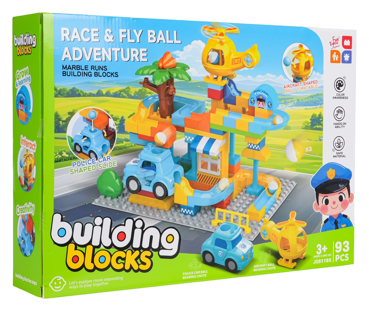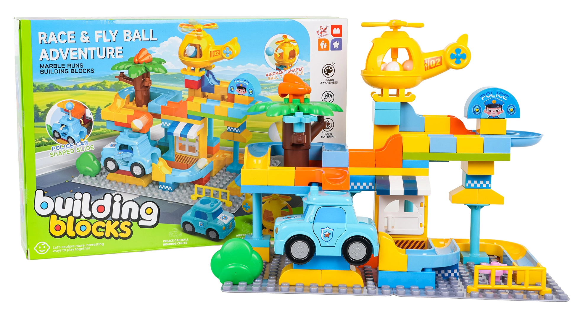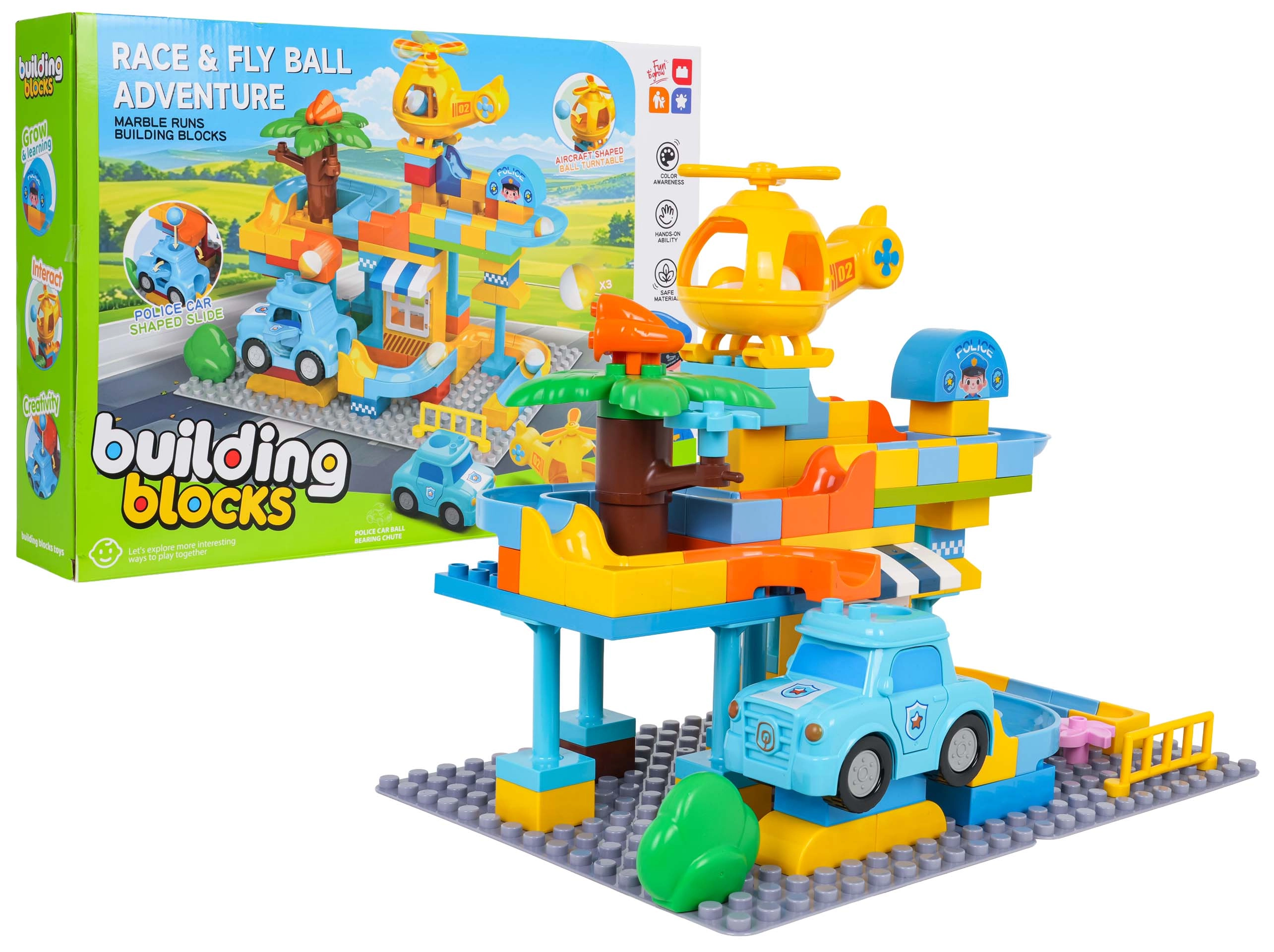 Im Set enthalten sind ein Polizeiauto, ein Hubschrauber und 3 Bälle. Ein durchdachtes Detail – die Öffnungen im Auto und im Hubschrauber – lässt die Bälle hindurchfliegen und verleiht dem Spiel eine neue Dimension. Das Bauset besteht aus hochwertigen, sicheren Materialien und ist für Kinder ab 3 Jahren geeignet.