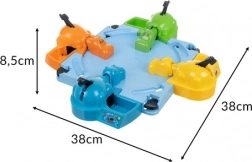 Entfacht einen spannenden Wettkampf um die Kugeln! Jeder Spieler steuert sein Nilpferd über einen großen Hebel – einfach drücken und das Nilpferd öffnet sein Maul und „schluckt“ die Kugeln. Die Regeln sind sofort verständlich, sodass sowohl jüngere als auch ältere Kinder und Erwachsene Spaß haben.