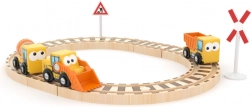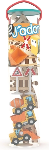 Im Set finden Sie 15 Teile, die leicht ineinander passen und die Hand-Auge-Koordination sowie logisches Denken fördern. Das Set ist ein tolles Geschenk für kleine Zug- und Technikfans und ergänzt hervorragend das Kinderzimmer sowie andere Holzbahnen.