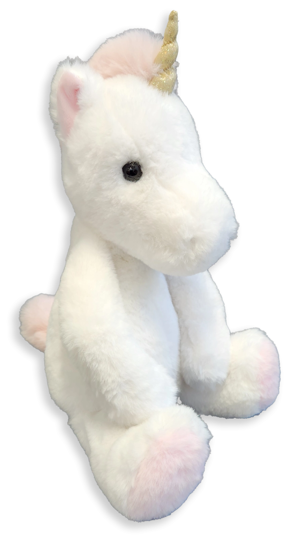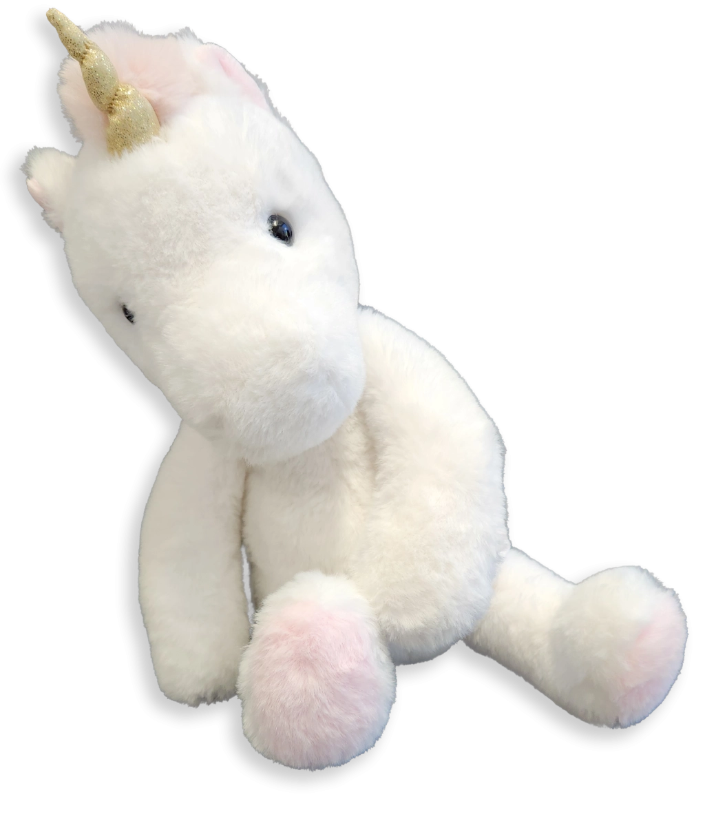 Das glitzernde goldene Horn und zarte rosafarbene Details verleihen dem Plüschtier einen märchenhaften Zauber, den Kinder lieben.