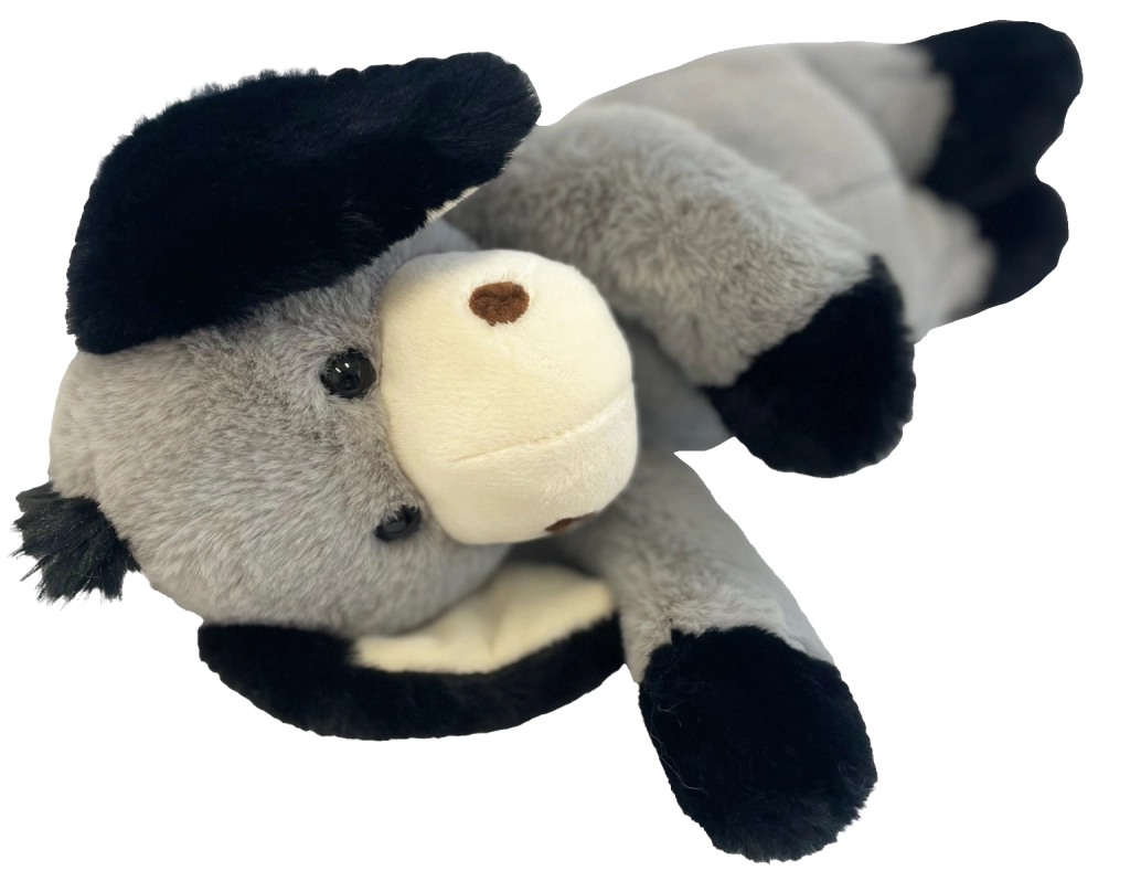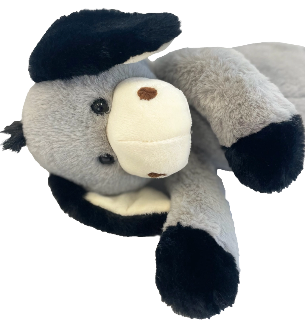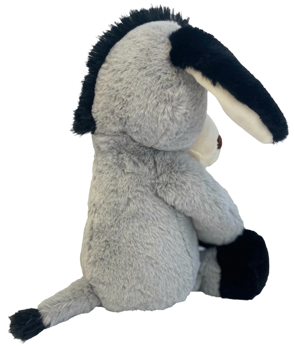 Der Esel hat gestickte Augen und Nüstern für maximale Sicherheit ohne Kleinteile, weiche Ohren und Pfoten für leichtes Greifen und robuste Nähte für lange Haltbarkeit. Dank der kompakten Höhe von 40 cm liegt er wunderbar im Arm und lädt zum Schmusen ein.