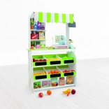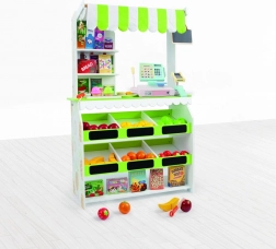 Entdecken Sie den Zauber des Kaufmannsladens mit einem Holzset, das ein realistisches Erlebnis von Einkaufen und Verkaufen bietet. Die robuste Konstruktion aus Naturholz garantiert eine lange Lebensdauer und sicheres Spiel, während das elegante Design jedes Kinderzimmer schmückt.