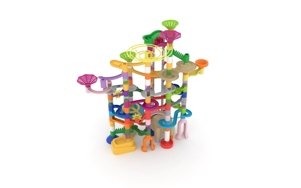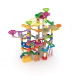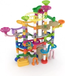 Diese große Murmelbahn bringt eine vielfältige Auswahl an Teilen für den Bau hoher Türme, dynamischer Abfahrten und spannender Tunnel. Dank der leicht kombinierbaren Segmente trainieren Kinder Geduld, Kreativität und technisches Denken, während sie beobachten, wie die Murmeln rasant durch die fertige Strecke sausen.