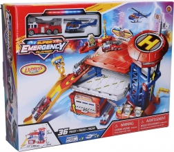 Baue deine eigene Feuerwache und ab in den Einsatz! Diese detailreiche Station mit Garage hat 2 Etagen, einen funktionierenden Aufzug und Auffahrten für schnelle Abfahrten. Dank der klappbaren Tore ist das Einsatzfahrzeug sofort startklar, während der Hubschrauber vom Dach aus startet.