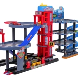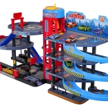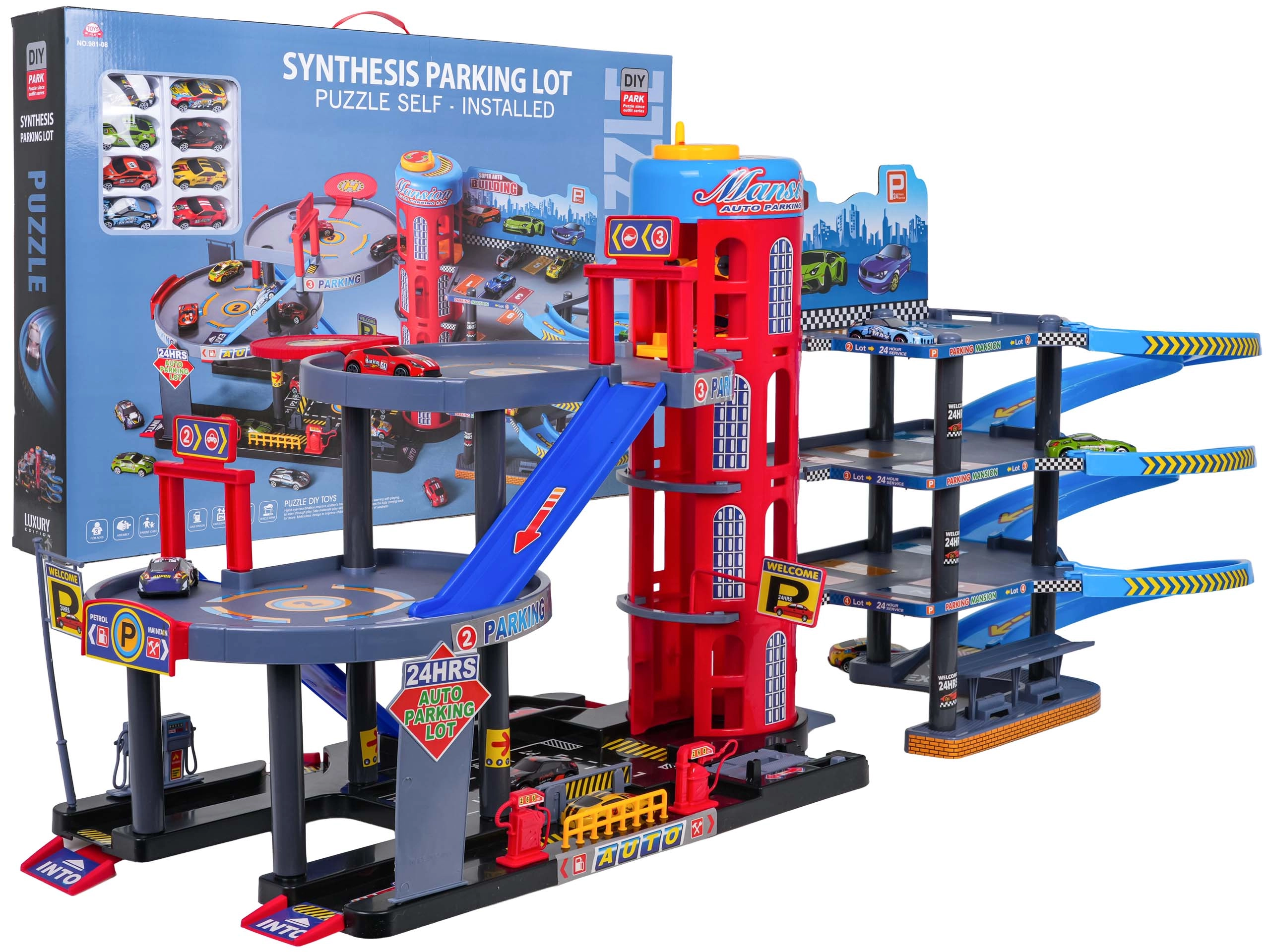 Entdecken Sie die Welt der Autos und Rennen mit einem robusten Parkhaus, das vier Etagen mit markierten Fahrspuren, Parkplätzen und Verkehrsbeschilderung bietet. Die Autos bringen Sie mithilfe eines manuell bedienbaren Aufzugs nach oben und schicken sie über spiralförmige Rampen oder erneut mit dem Aufzug nach unten. Eine Zapfsäule sowie ein Heliport sorgen für noch kreativeres Spiel.