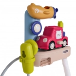 Zum Set gehören ein niedliches Auto, ein Becher und eine stabile Basis, die zum Gießen, Spritzen und Entdecken einladen. Hochwertige, gesundheitlich unbedenkliche Materialien und glatte Kanten gewährleisten sicheres Spielen. Dank der leuchtenden Farben und beweglichen Teile lieben Kinder das Baden, und Eltern schätzen die einfache Pflege sowie die schnelle Installation.