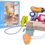 Auto, Becher und weitere Wasserelemente fördern kreatives Spielen, Gießen, Spritzen und die Feinmotorik.
